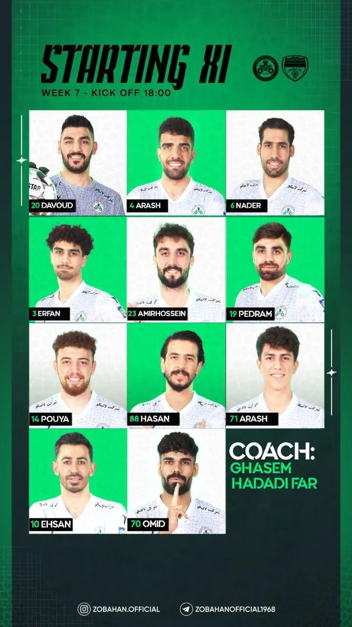 حامد لک، علی نعمتی، ابوالفضل رزاقپور، محمد قریشی، سینا مریدی، پوریا سرآبادانی، سینا اسدبیگی، ساسان انصاری، یوسف مزرعه، گوستاوو بلانکو و احسان محروقی