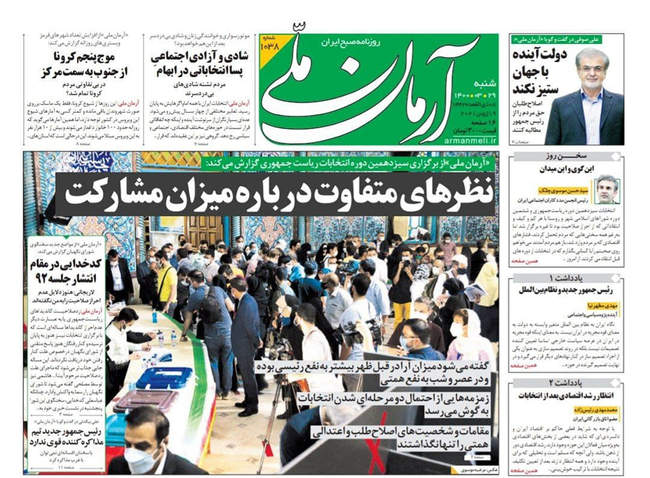 صفحه اول روزنامه ها شنبه ۲۹ خرداد